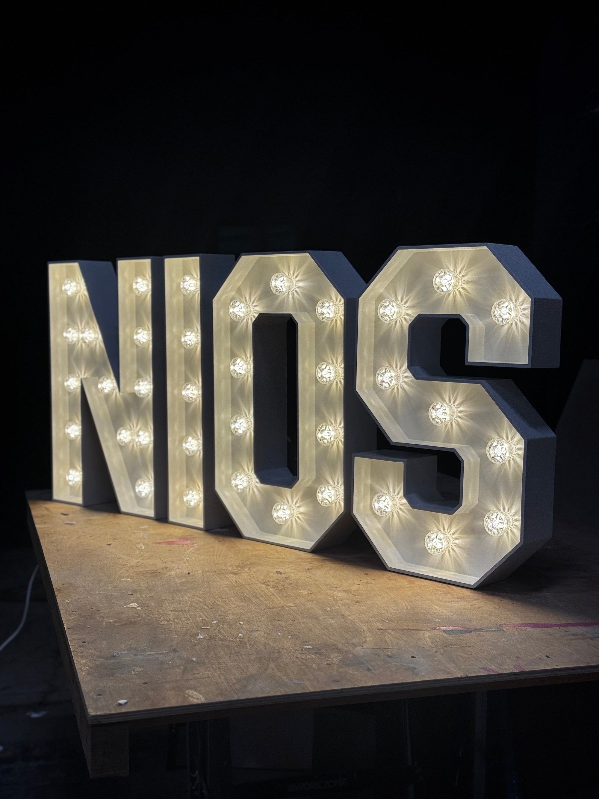 Our standard range of light-up letters are made from wood. However, if you are looking for a bespoke font or style, we also manufacture light-up letters from steel and aluminium.